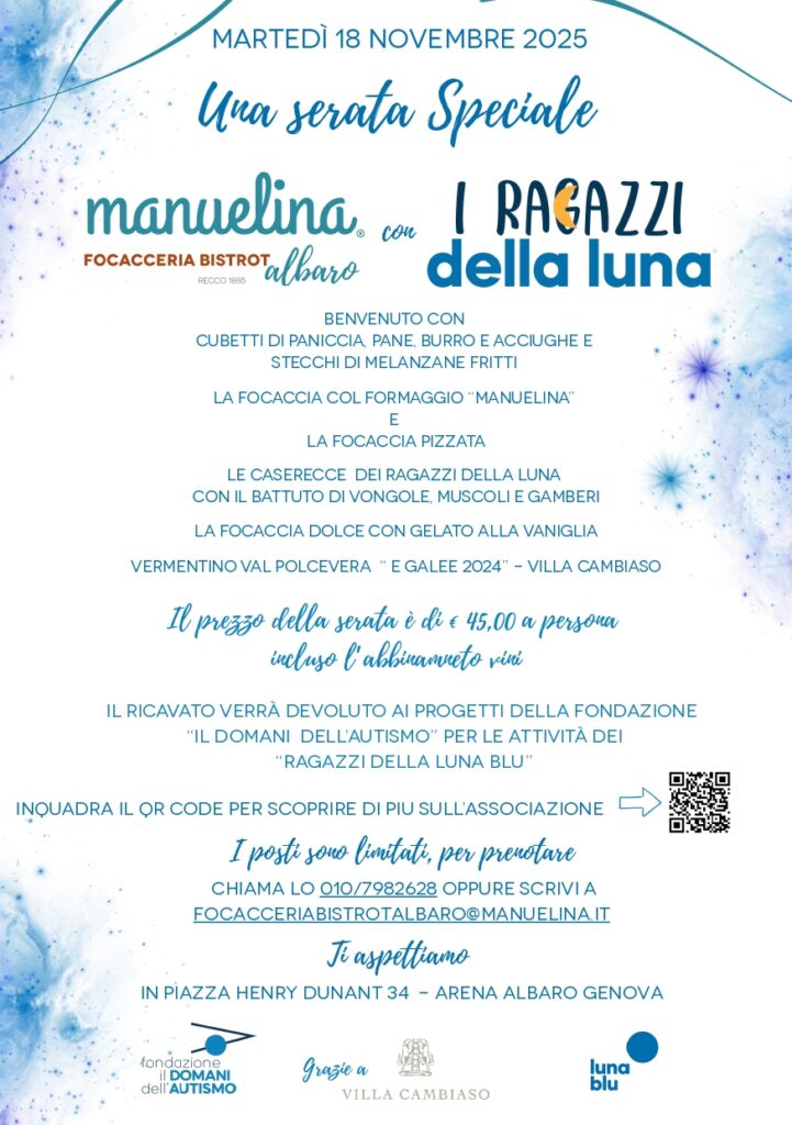 In questa una serata speciale ospiteremo i ragazzi della Luna Blu alla nostra Focacceria di Albaro.